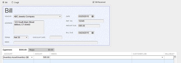 When you enter the vendor bill in QuickBooks, it debits InventoryQB and credits Accounts Payable.