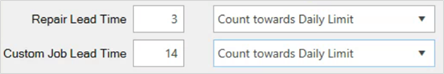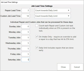 - At the top, set the Repair and/or Custom Job Lead Times. This number of days will be used when suggesting ETA during the job intake.