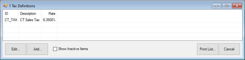 - Select Tax Definitions. The Tax Definitions window will appear.