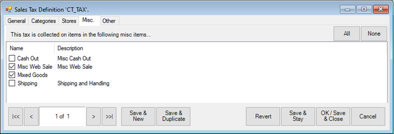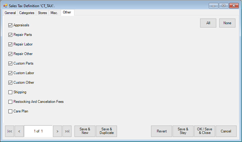 The Categories tab allows you to select categories of items for which the tax should be collected.