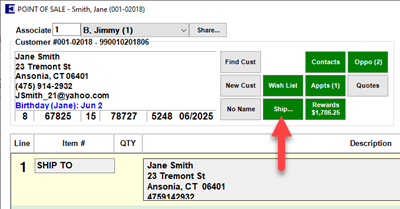 - Enter sale details at POS. You must use the Ship… button to specify a Shipping Address, otherwise the override option will not be available.