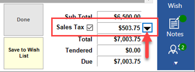 - In the bottom right, click the drop-down arrow next to Sales Tax.