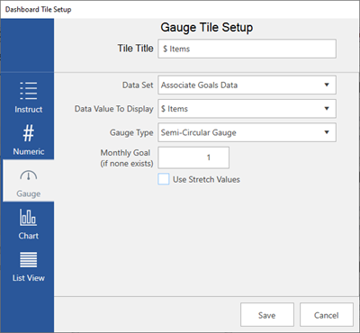 When checking the box for Use Stretch Values, you will notice the Tile Title will automatically add “(Stretch)” to the end of your title. This is done to prevent confusion on whether the tile is displaying an Associate Goal or an Associate Stretch Goal.