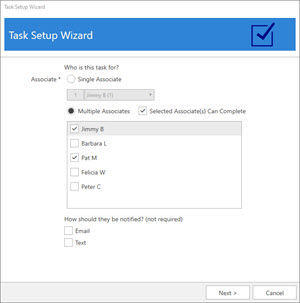 If you want to create a task that multiple selected associates can complete you must use this wizard. The regular Add Task window only supports a single associate or any associate.