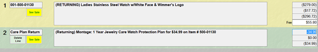 - Select OK. The Edge will automatically populate two line items, one for the item to return and one for the care plan to return.