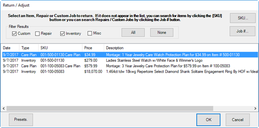 - Select Return/Adjust and locate the desired line item.