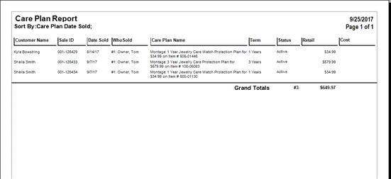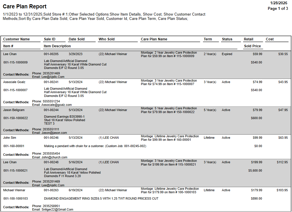 Below you will find descriptions of the two reports available to track and manage your Montage Jewelry Care Plans.