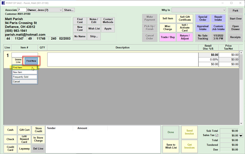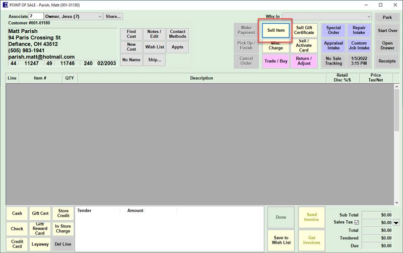 - To verify by scanning old barcodes, simply click the Sell Item button and scan your item. If successful, you will see your item appear on the sale line. You will be alerted the SKU is not on file if the scan is not successful.