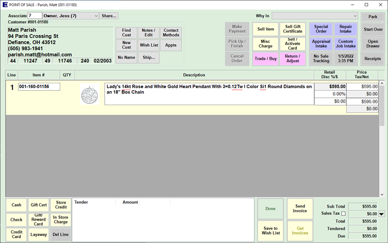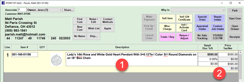 NOTE: For steps on entering an associate and locating a customer, please revisit the previous article entitled POS (Point of Sale): Verify Customers.