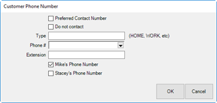 - Find and edit the customer. On the General tab, click the +Phone button. The Customer Phone Number window will appear.