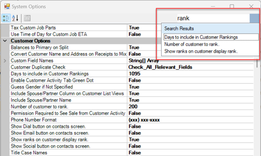 There are three new System Options and an Associate Permission added that are relevant to this feature. The Associate Permission is required to Edit or Delete your Customer Rankings.