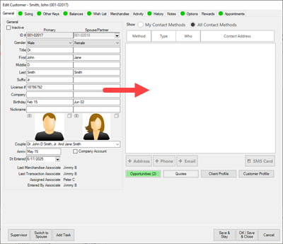 On the customer record, the Contact Methods will appear blank.