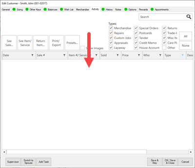 The same is true for the Activity and Merchandise tabs.