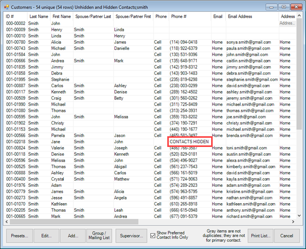 When a customer has the Hidden Contact option enabled their contact information and sales history will be hidden throughout the software.