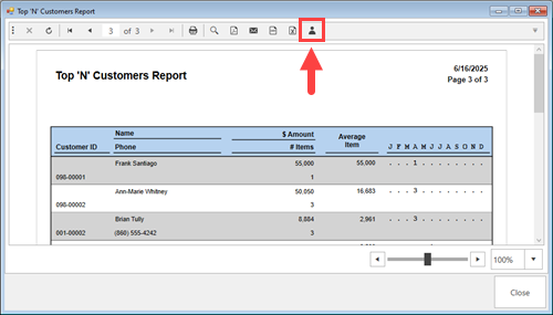 - Run the desired customer report (e.g., Top N, Performance, Simple List)