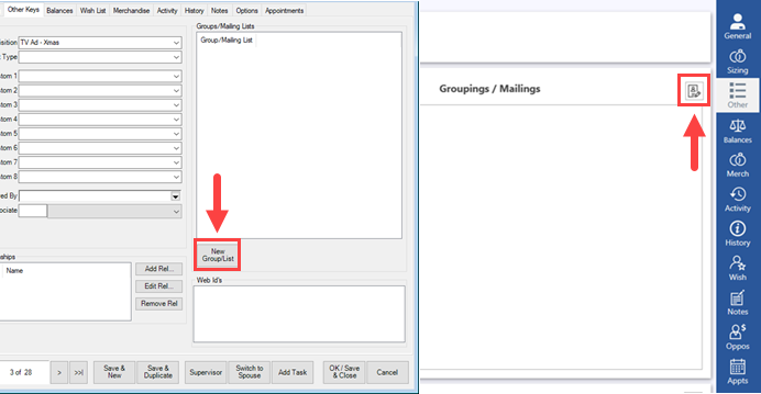 - Click on the Other Keys or Other tab depending if you are working with the Customer Record or Display.