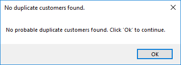 1. A message will appear indicating no probable duplicates were found.  There is no further action to take.