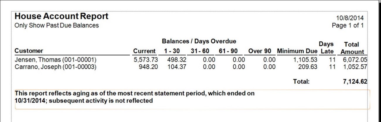 The amount that is unpaid for between 1 and 30 days since the last closing.