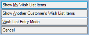 - From this menu, select Wish List Entry Mode. The POS screen will change to remove non-Wish List functions.
