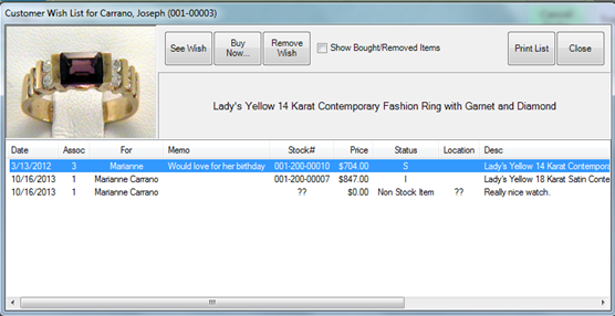 - Show My Wish List Items yields a listing of items associated with the customer.