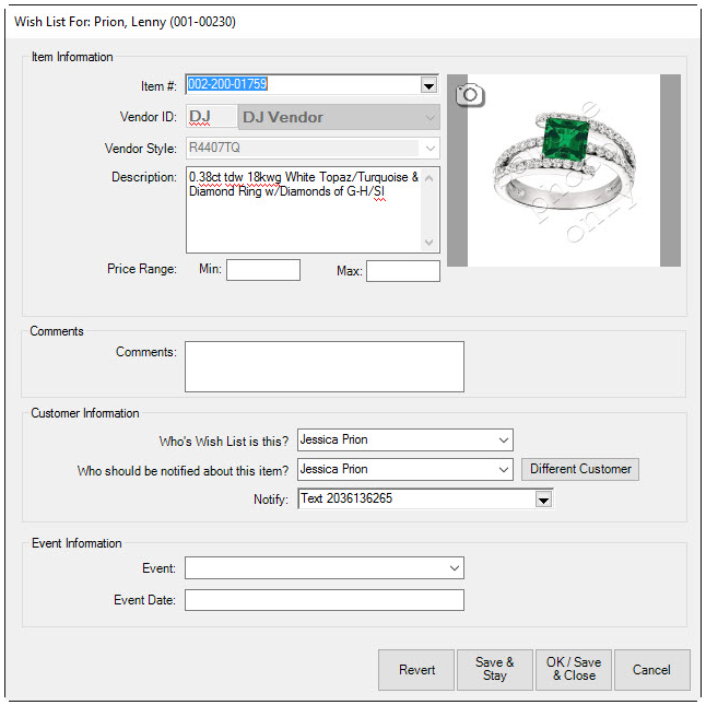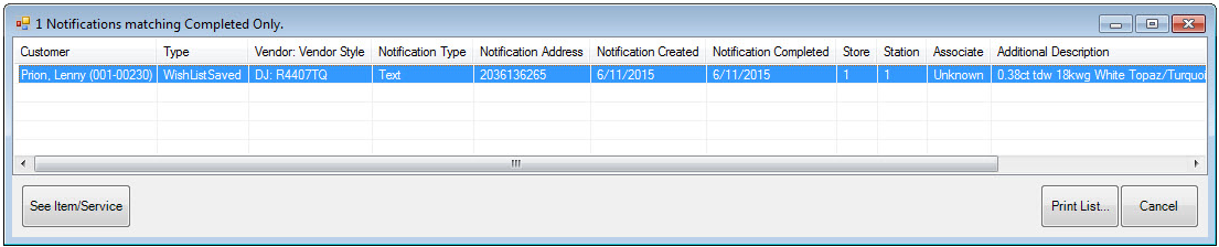 - To work with a record, select See Item/Service. The Wish List item record will appear.