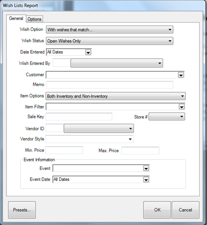 To get a Wish List report:
