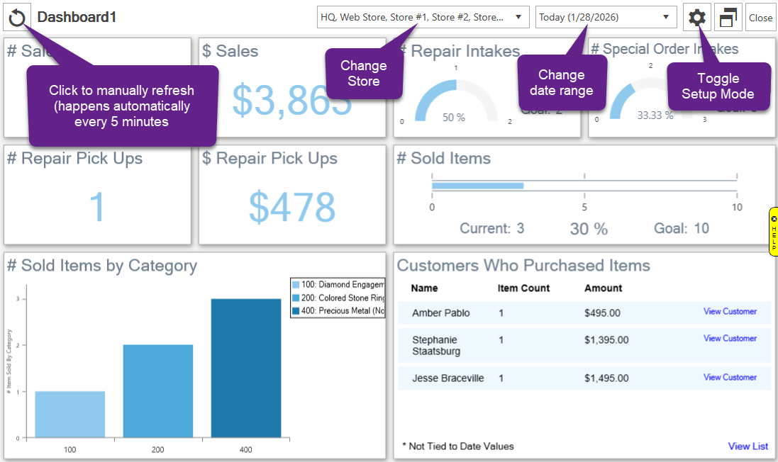 To view a Dashboard, click its corresponding button in The Edge menu. You can find your list of Dashboard buttons by visiting the Dashboards tab.
