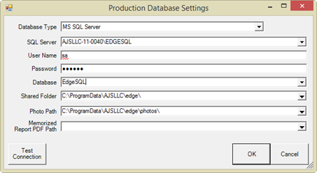 d. Password: Enter your SQL server password provided by Edge Technical Support during your SQL installation.