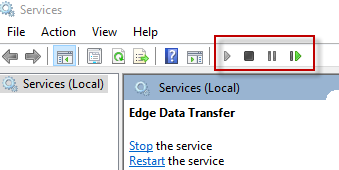 - Alternatively, you can start and stop the EDT service by highlighting Edge Data Transfer from the list and clicking the start and stop buttons located at the top of the window.