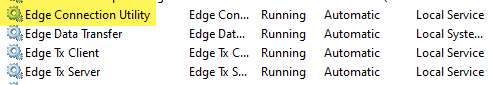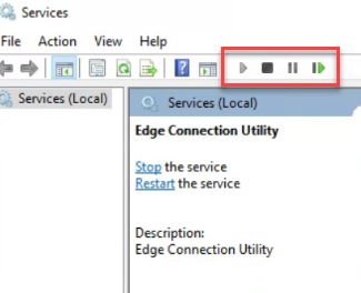 - Alternatively, you can start and stop the ECon service by highlighting Edge Connection Utility from the list and clicking the start and stop buttons located at the top of the window.