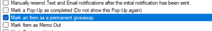 A System Option and Associate Permission were added to control how Automatic Giveaways display on receipts and allows you to grant permission to only the associates who should be allowed to mark items as giveaways.