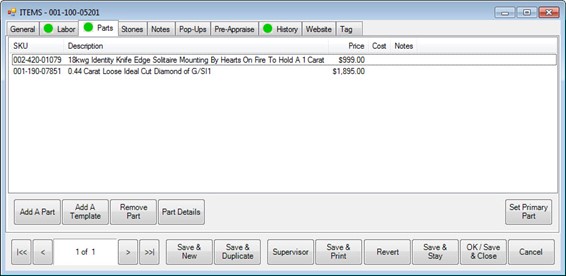 Use the Remove Part button to individually remove each part from this item. For stock parts, they will be restored to in stock status in inventory under their original stock number. Miscellaneous parts will be removed without affecting any inventory since they never existed in inventory in the first place. You can add them as new items (with a backdated entry date) if you wish.