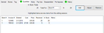 If this item has been in inventory you do not want to create another Bulk Master. Instead, you want to add quantity to the existing record. There are two ways to do this: Adding from the Quantities tab and adding from Invoice.