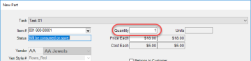 When this item is added as a part to a repair or assembly job it will display a Quantity field. Enter the quantity to be used. Upon finishing this task the quantity will be reduced from the oldest shipment on file. The cost of goods used will also use the cost from the oldest shipment.