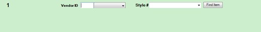 - Locate the desired style number using the Style drop-down menu. Alternatively, use the Find Item option to locate an item using the Item Find feature.