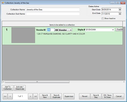 - From the results provided by the Collection Find function, select a collection record and double click it or select Edit. The Collection screen will open; it will contain the same fields as described in the section entitled Creating Collections.