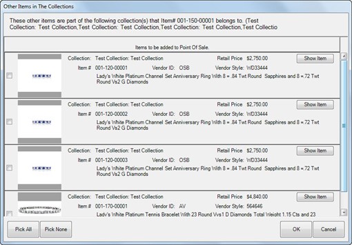 - If an item from a collection is sold at POS, a window will appear suggesting other items from the collection.