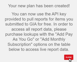 - Finally, you must email us your API key so that we can add it to your Edge license. Copy/paste this Key Value and email it to Service@ajsllc.com with the subject GIA Sign Up. Be sure to indicate your store and address in the email.