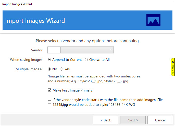 NOTE: This only works if the images are named after the vendor’s style number.