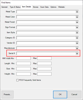 When adding or editing items in this category, Serial # will now appear as a detail.