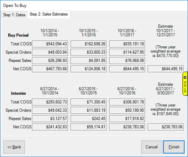 Lists the time periods entered in step 1 but for previous years’ sales.