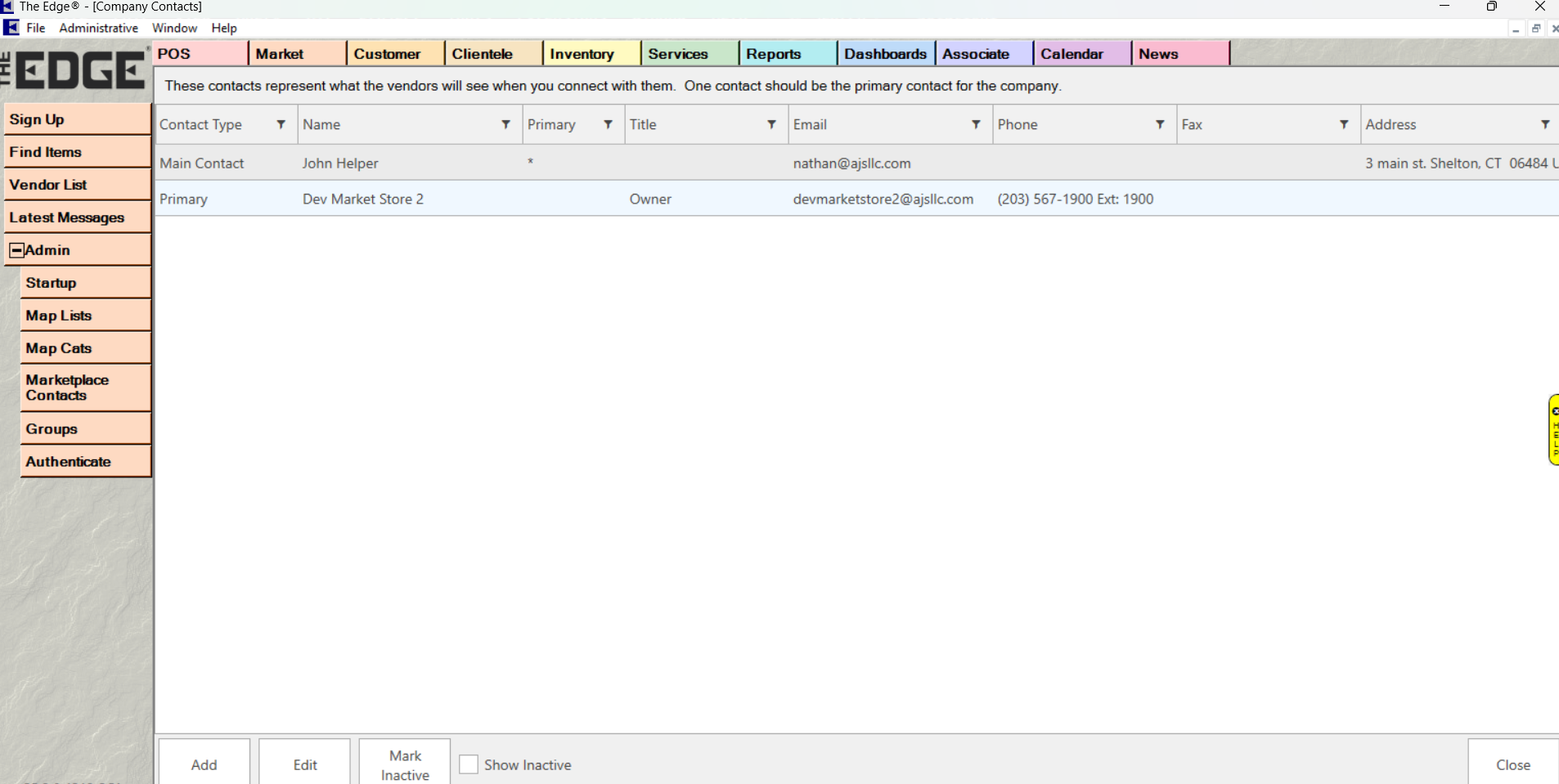 You can access this screen by going to Market > Admin > Marketplace Contacts
