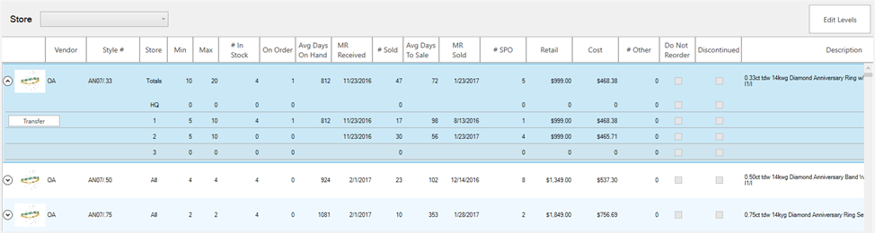 The Levels feature now displays in an interactive grid and will break down stock levels by store.