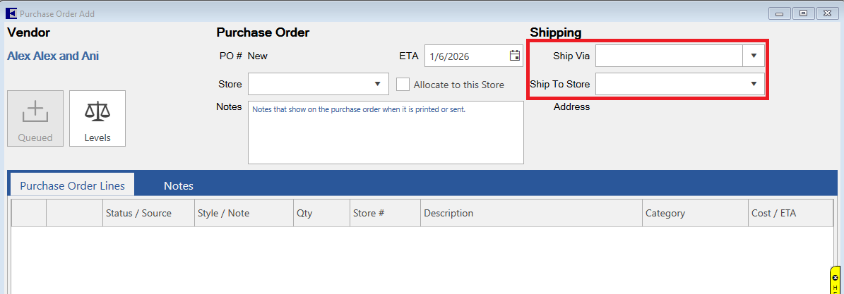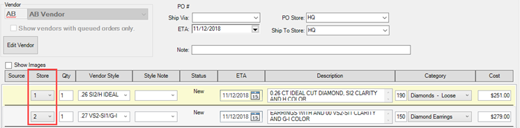 Each PO line item can also be assigned to a store.