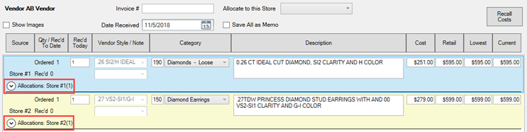 When using Rcv Invoice, the items will automatically allocate to the store they were assigned on the PO.