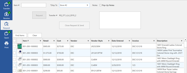 Click this button to use the Item Find filter to search for inventory. Items matching your criteria will be displayed allowing you to check those you wish to request.