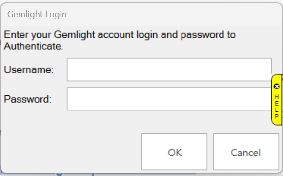 - Enter your GemLight ID and Password, then click OK to complete authentication.