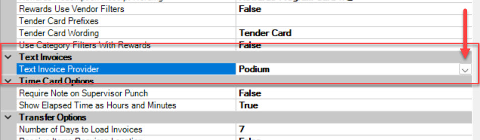 - Search or scroll down to the Text Invoices section and locate the option named Text Invoice Provider.