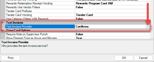 - Search or scroll down to the Text Invoices section and locate the option named Text Invoice Provider.