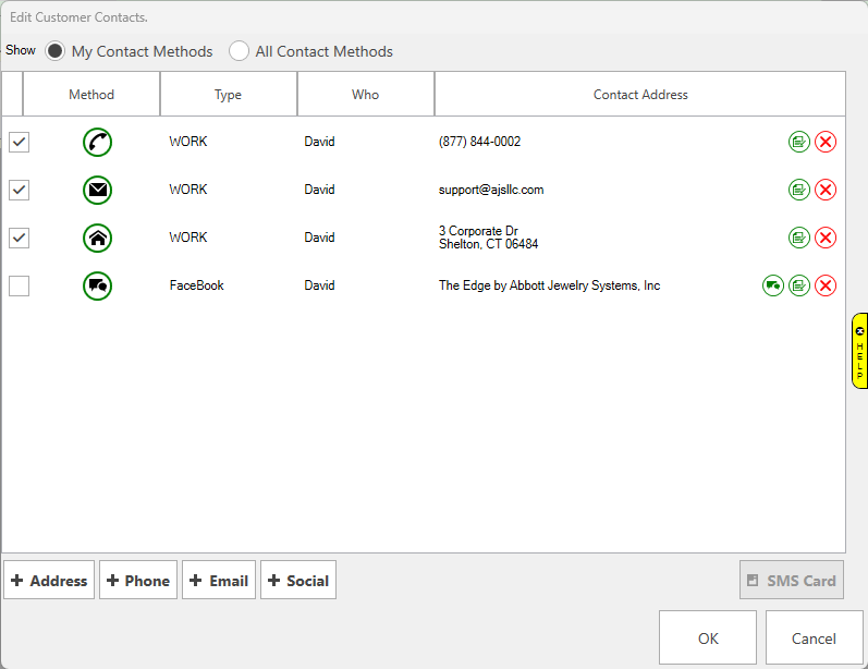 Use the Contact Methods option to quickly update a customer’s contact information as described in the section entitled Customer General Tab.